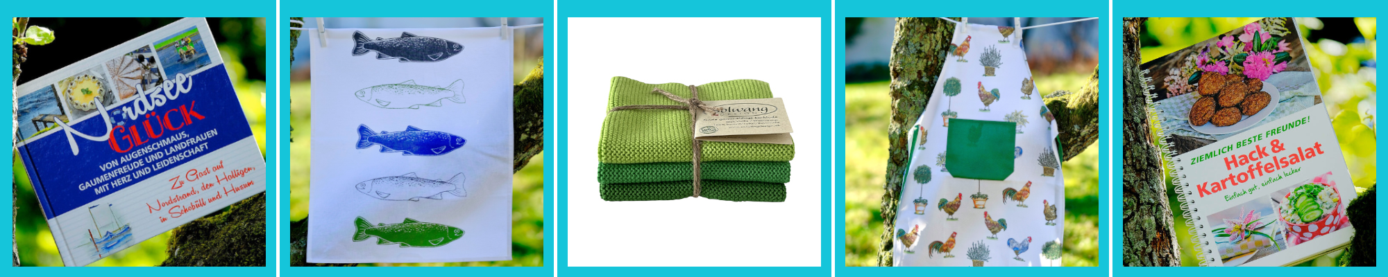 In unseren Büchern finden Sie einfache und so köstliche Rezepte für Suppen, Salate, etwas Deftiges. Aber natürlich spielt auch das Süße eine Hauptrolle. Kuchen mit Pflaumen oder Äpfeln. Mit Sahne oder Joghurt. Mit Streusel oder Marzipan. Unsere Empfehlung wäre zum Beispiel das Buch „NordseeGlück” von den LandFrauen aus Nordstrand und Umgebung. Genüsse für das Deftige finden Sie u. a. in „Hack und Kartoffelsalat”.